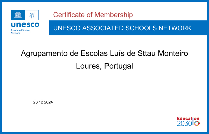 É com grande orgulho que anunciamos que o Agrupamento de Escolas Luís de Sttau Monteiro foi reconhecido como Membro da Rede de Escolas Associadas da UNESCO a 23 de dezembro de 2024. Este reconhecimento reflete o compromisso do agrupamento com a promoção de uma educação inclusiva e de qualidade, alinhada com os princípios da UNESCO.