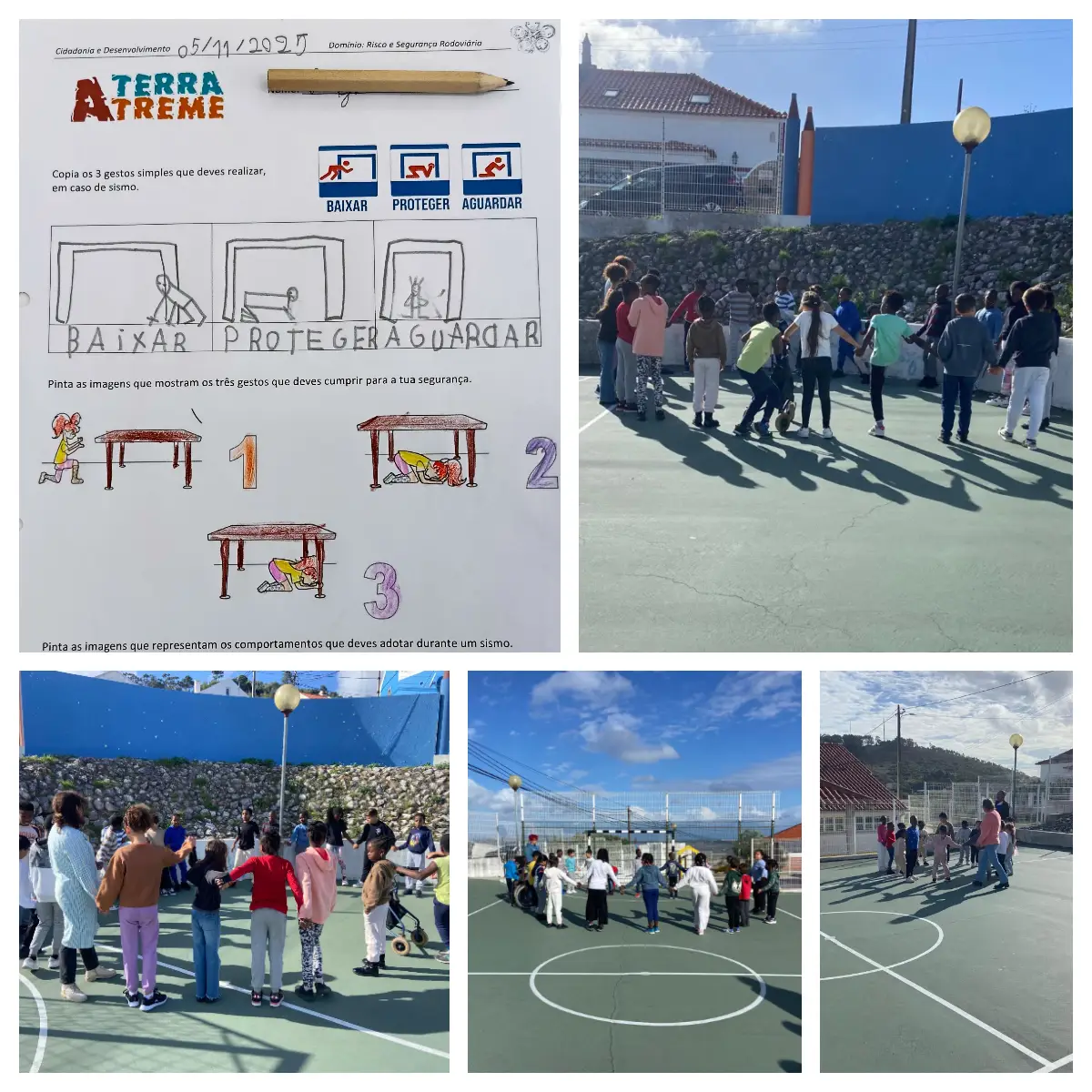 No dia 5 de novembro de 2025, a EB de Montemor participou, mais uma vez, no exercício “A Terra Treme”. O tema foi trabalhado em sala de aula nas diversas turmas, foram definidos e relembrados os vários procedimentos a adotar e os responsáveis por estes. Todas as turmas participaram no simulacro, com o ponto de encontro no campo de futebol. No final, foi realizado um balanço em cada sala de aula. Os alunos do 1.º Ciclo realizaram trabalhos alusivos para consolidação da experiência. A atividade correu muito bem e agora estamos todos mais preparados para lidar com um sismo, caso este venha a acontecer. Atividade realizada no âmbito de Cidadania e Desenvolvimento, dimensão Risco.